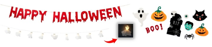 今年はちょっとコワめなガーランドとキュートなおばけのライトチェーンでパーティーを演出するのはいかがでしょう?キッズは窓にぺたぺたステッカーを貼って楽しんで!