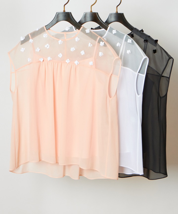 「スパンコールフラワーブラウス」の名古屋タカシマヤ店限定カラー、ピンクをご用意。