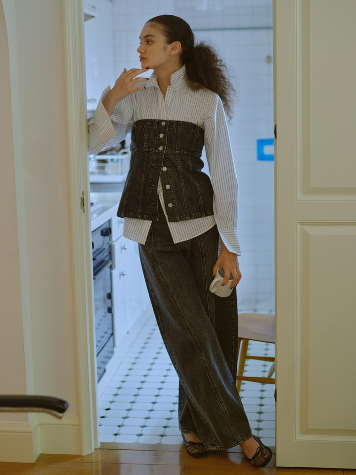 Bustier ¥17,600 / Shirt ¥27,500 / Pants ¥22,000 / Shoes ¥44,000 (HEWN)