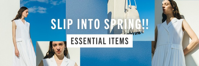 トリコロールカラーのスカーフ柄や、バタフライプリントなど、初夏のドレスアップアイテムが揃います。